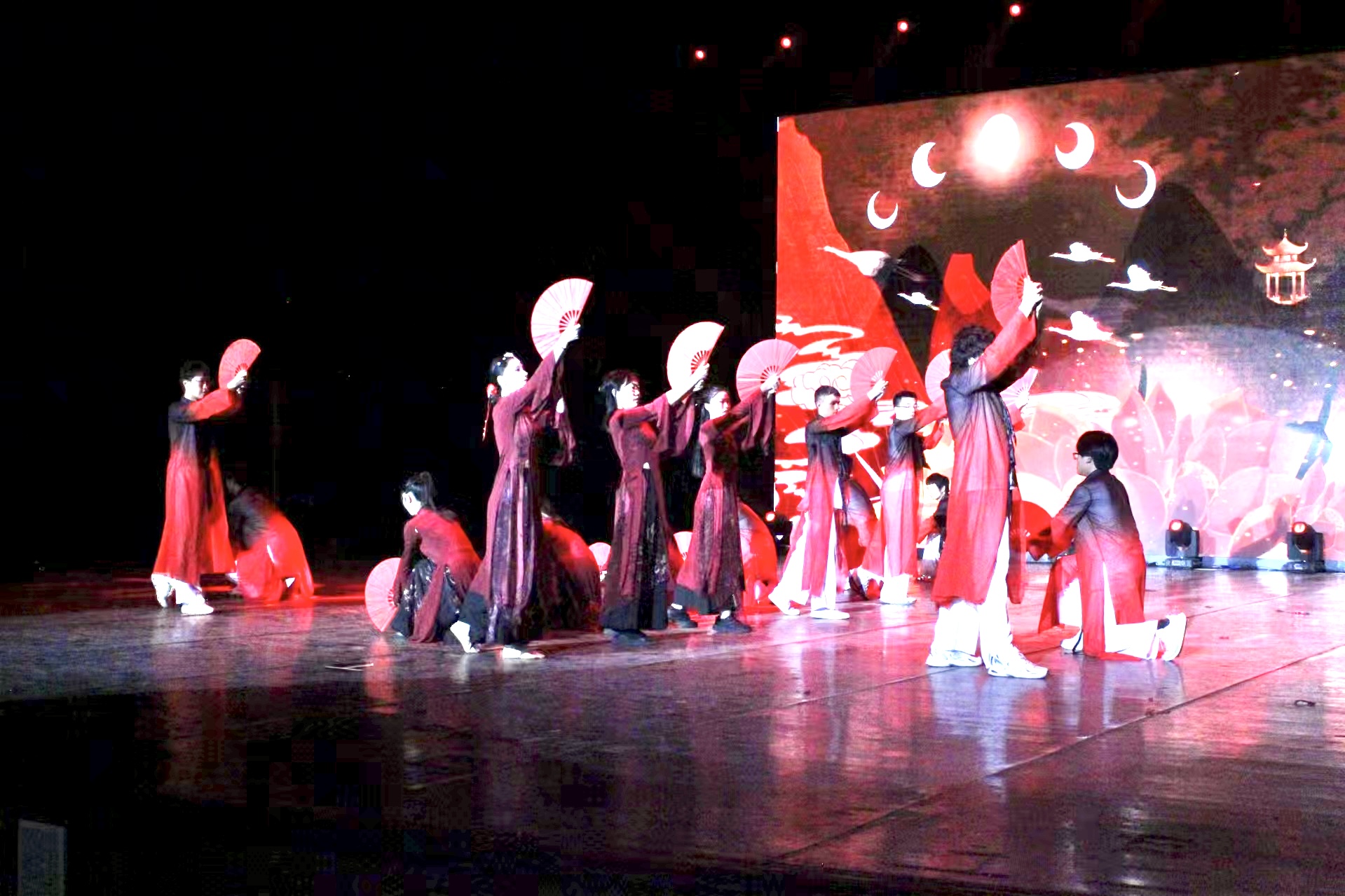 器件2201班在本届舞蹈大赛中选择了代表了力量和柔美的舞蹈《象王行》。《象王行》本身寓意着进退有度,力刚而行事不莽,是关大洲最具代表性的国风作品之一,也是其为节目《国家宝藏》量身打造的开场音乐。同学们采取扇舞的形式,以扇子为道具,通过灵动流畅的古典舞舞姿在空间中变换,加上音乐的磅礴气势,舞出一幅蛟龙觉醒的画面,展现出一种别样的美。呼应了歌曲刚中带柔,大气浩瀚的风格。器件2201班同学们的表演不仅是一场视觉的盛宴,更是对传统文化的传承与发扬,展现了中华文明的源远流长,中华优秀文化的博大精深。