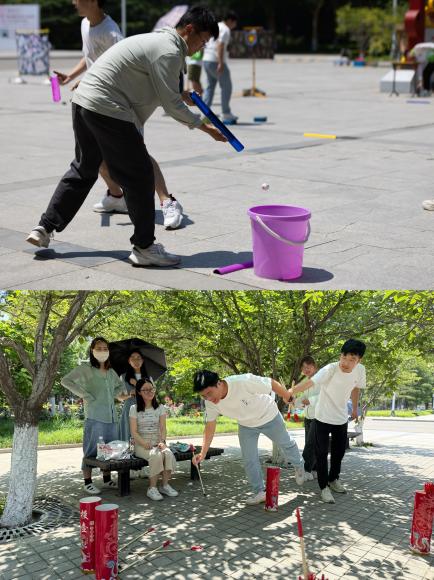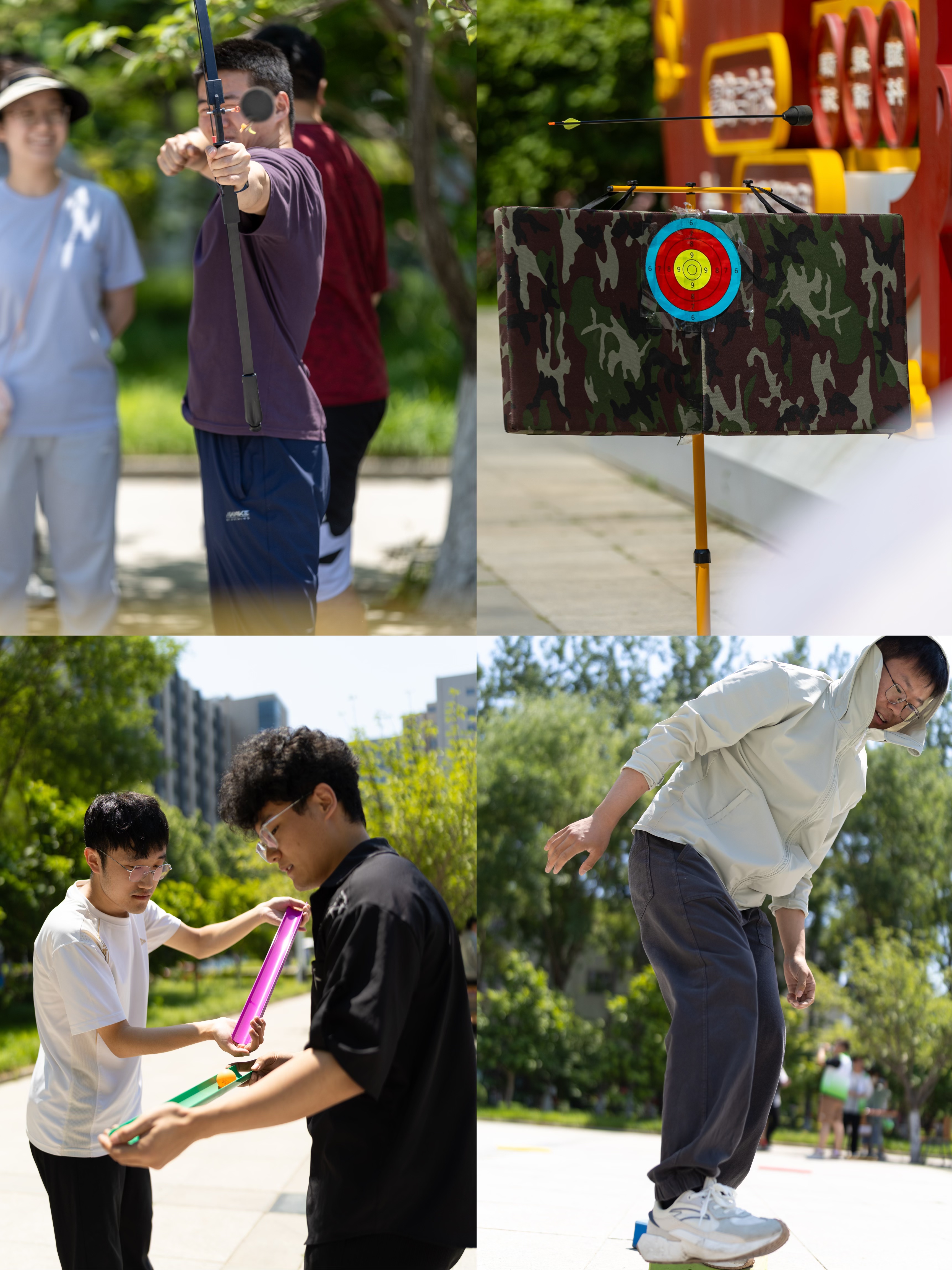 本次趣味运动会设置了6大特色趣味项目。其中,“沙暴投弹手”项目凭借其操作简便与竞技趣味并存的特点,赢得了参赛选手的热烈欢迎;“箭指壶心”项目则巧妙融合了趣味性与精准性,成为本次运动会中技术含量较高的挑战之一;作为最具“武侠梦”氛围的项目,“弓箭射靶”不仅为本次运动会注入一抹英气,还体现了大家的决心与信念;“冰壶”项目也以其独特的竞技方式成为本次活动的一大看点;“接力传球”项目将默契与节奏感推向高潮,增强了同学们的团队协作能力;“摸石过河”项目堪称本次运动会中“体能+智慧”的双重挑战,让大家认识到强身健体的重要性。