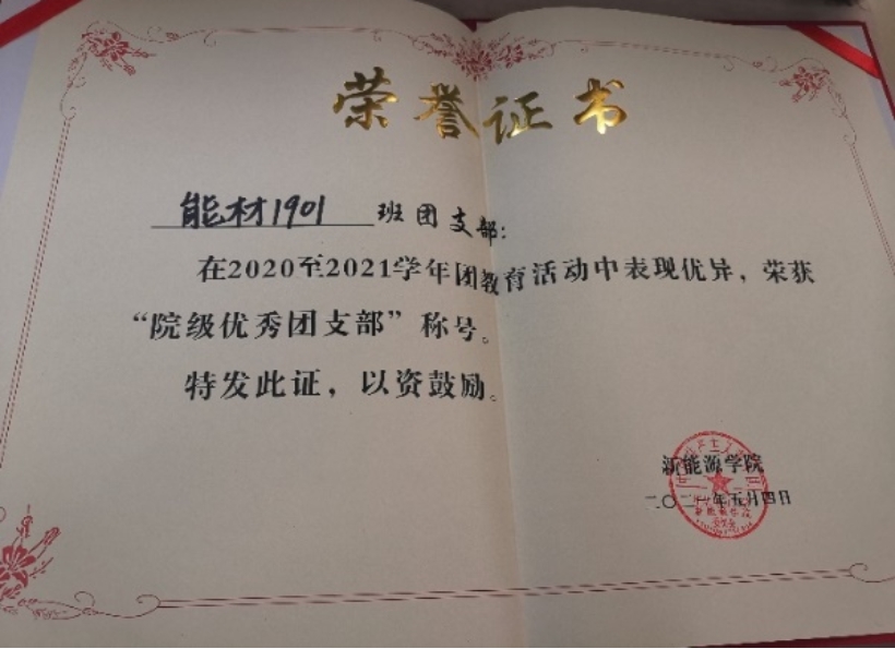 2021−2022学年,班级共有14人获得奖学金,奖学金覆盖率超45%,1人获得国家奖学金,3人获得国家励志奖学金,2人获得一等奖学金,3人获得二等奖学金,多名同学获得三等奖学金、单项奖学金。多名同学获得“校级优秀团员”、“优秀团干部”、“校级三好学生”等荣誉称号。