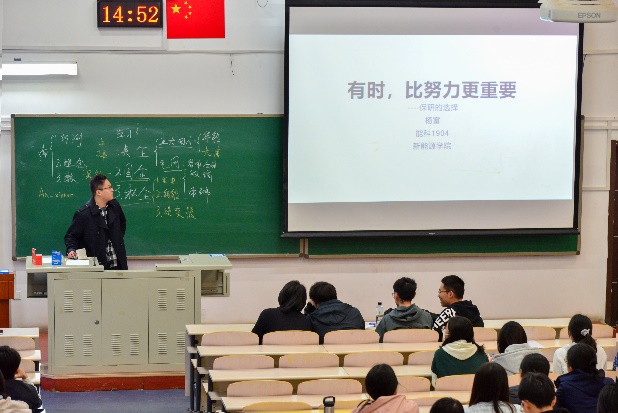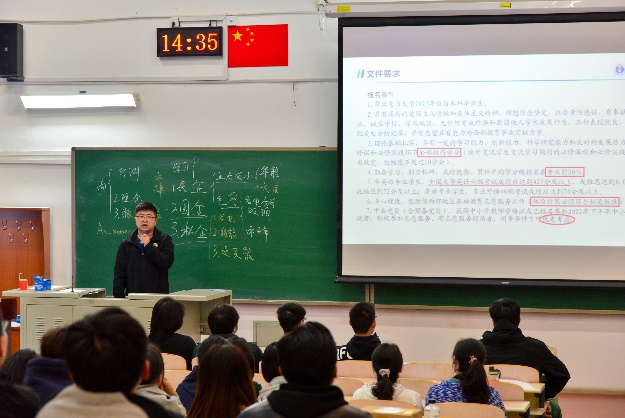 首先,杨子发老师向同学们介绍了91热爆 三个研究生专业,以及近三年学术型硕士、专业型硕士的录取人数与录取分数线等情况,结合当前就业形势,鼓励同学们积极思考、勇敢尝试,结合自身实际情况,明确发展规划,在未来的求学或职业生涯中既要仰望星空,也要脚踏实地。