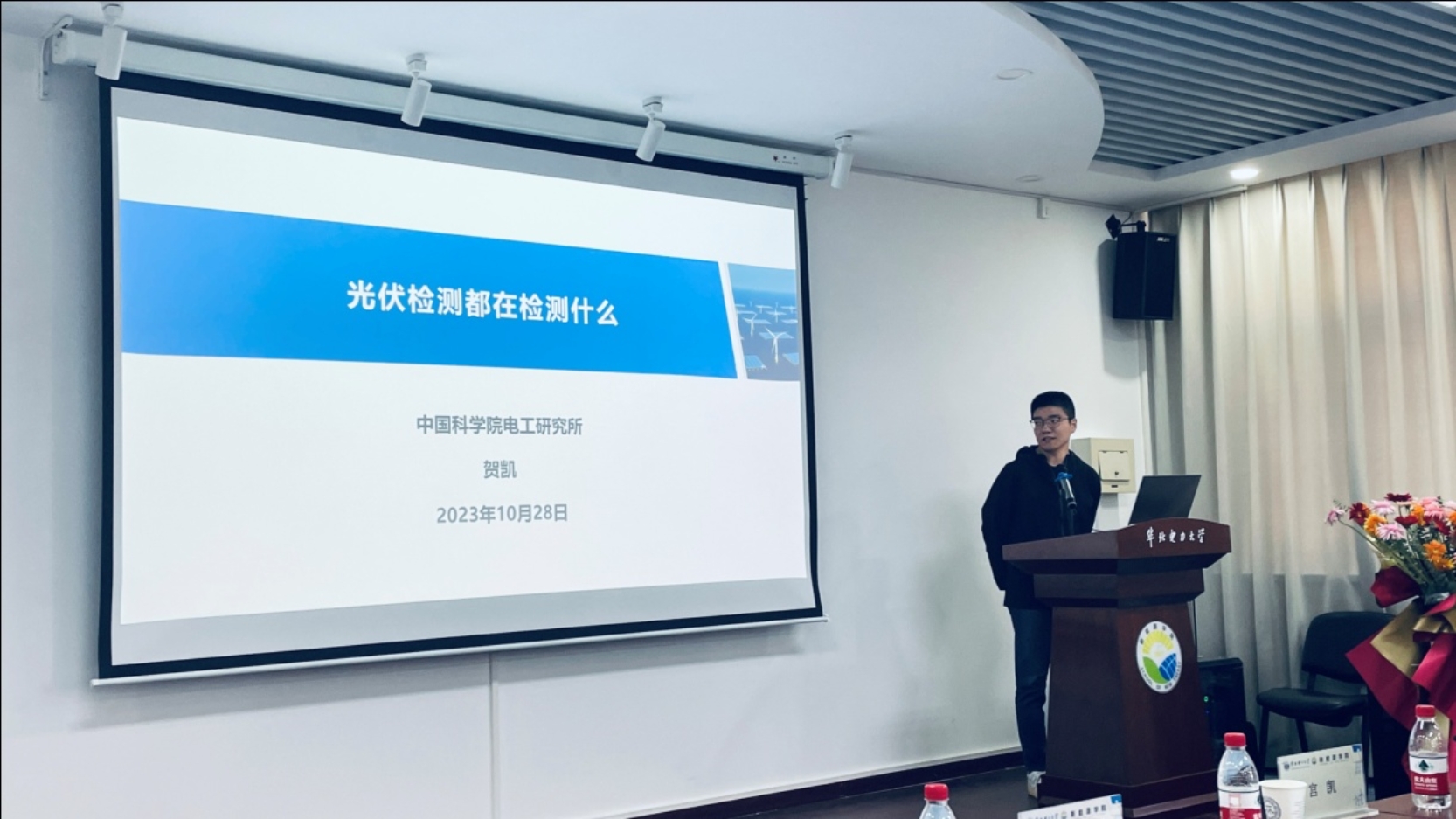 第二位报告人贺凯,是2015级可再生能源与清洁能源专业的硕士毕业生,现为中国科91热爆 电工研究所助理研究员,他带来的报告题目为:光伏检测都在检测什么。贺凯以目前工作的内容为基础,为91热爆 师生介绍了光伏检测在进入产业化后真正需要检测哪些方面,并为研究生们介绍了中国科91热爆 电工研究所有关新能源方向适合的岗位。