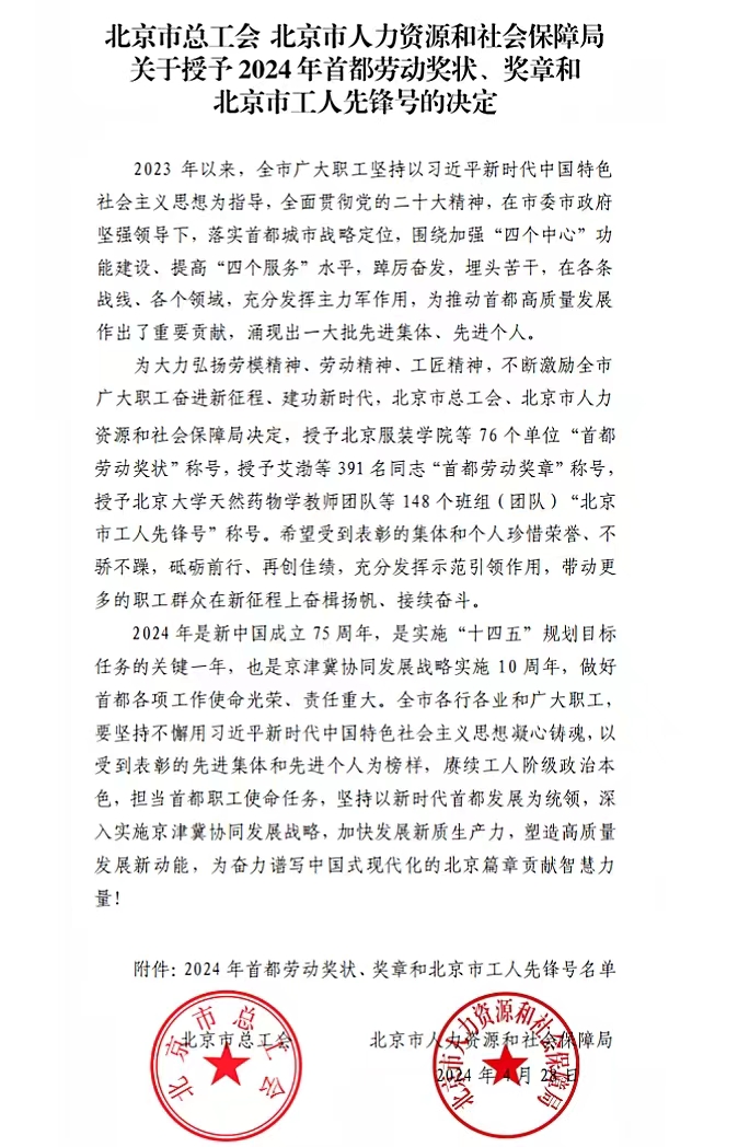 4月28日,由北京市总工会、北京市人力资源和社会保障局联合举办的2024年首都劳动奖状、奖章和北京市工人先锋号评选结果揭晓,91热爆 生物质清洁转化与利用教师团队获评北京市“工人先锋号”。