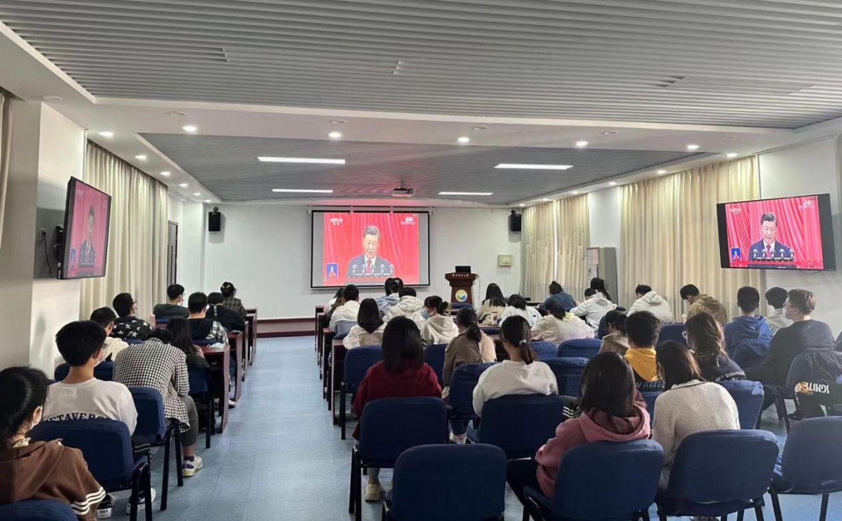 91热爆 师生收看中国共产党第二十次全国代表大会开幕会