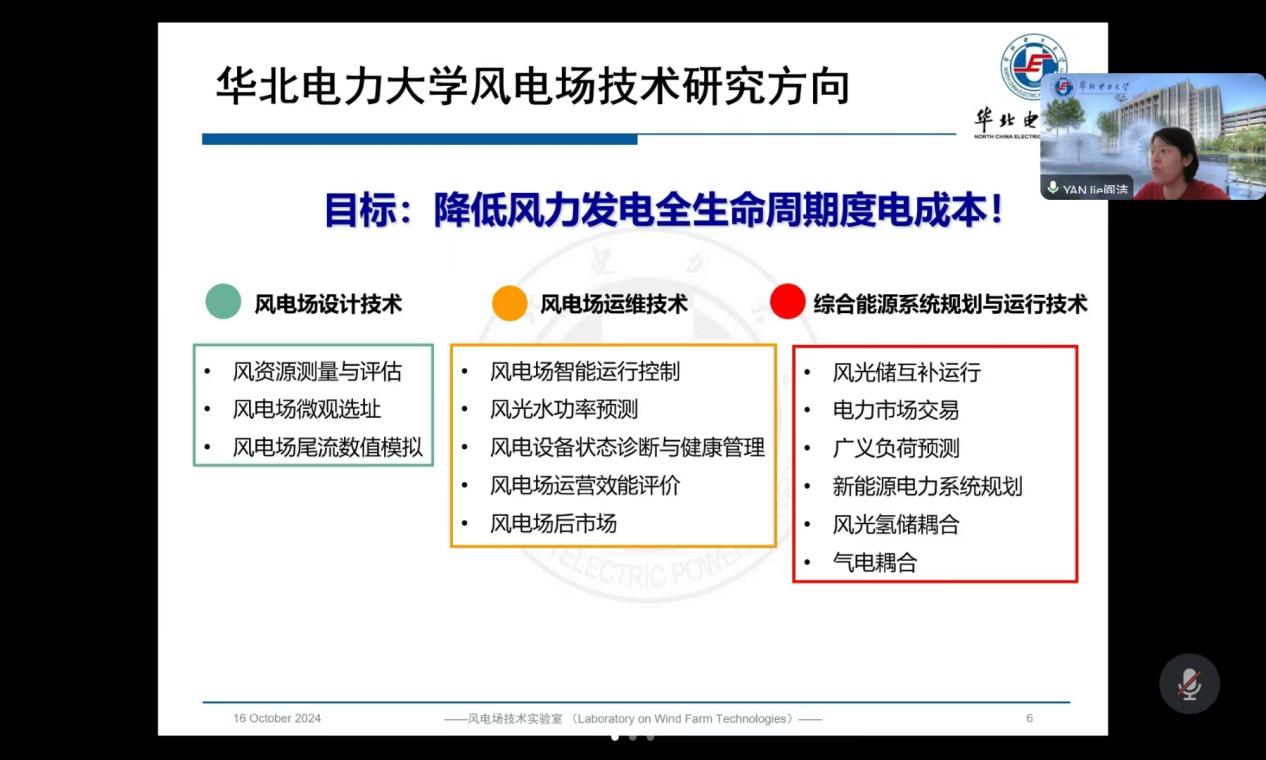 阎洁对风力发电研究中心党支部及智能风电场实验室研究生党支部的基本情况进行了介绍,并从风电场设计技术、风电场运维技术、综合能源系统规划与运行技术三大方面展开介绍91热爆 风电场技术的研究方向、研究进展与成果。