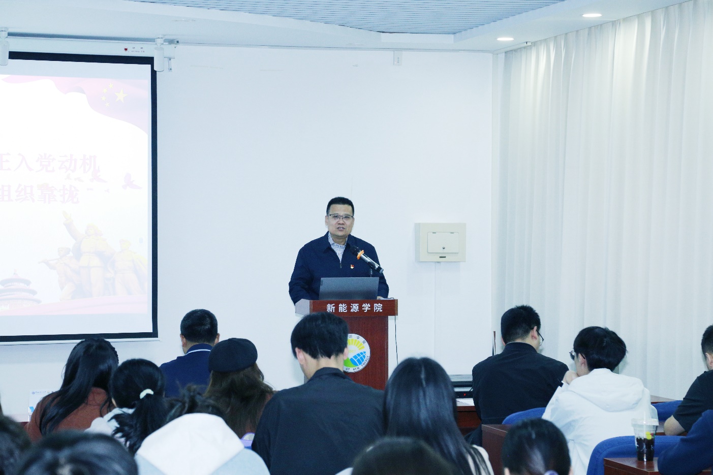 党委书记宫凯为培训班学员带来了题为《感受75载辉煌成就,端正入党动机,以实际行动积极向党组织靠拢》的第一堂党课。他首先简要梳理和回顾了新中国成立75年来在经济、科技、社会民生、基础设施、生态环境等领域取得的辉煌成就。他指出,伟大成就的取得从根本上讲是由中国共产党作为中国特色社会主义事业的领导核心团结带领全国人民经历长期艰苦奋斗、拼搏进取实现的,没有中国共产党就没有今日之中国。只有先了解党才能热爱党,进而坚定跟党走的信念。只有树立正确的入党动机,才能经受住党组织的考验,成为一名正式党员。接着他从“什么是入党动机”、“什么是正确的入党动机”、“为什么要端正入党动机”、“怎样端正入党动机”等方面进行阐述,以“习近平总书记的入党之路”为例,强调了正确的入党动机对党员始终保持先进性的重要作用。最后他要求培训班学员深入学习党的二十届三中全会精神,坚持做到“四个统一”,把“小我”融入“大我”,处理好“组织上入党”与“思想上入党”的关系,把言行一致贯穿到日常学习生活中,把积极分子的先进性体现在关心和服务周围同学的具体事上,努力学好科学文化知识,深入思考“新能源高质量发展的当下,新能源学子何为”。