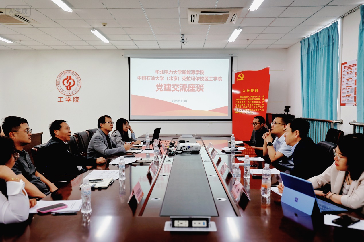 参观结束后,双方举行座谈。工91热爆 党委书记谢庆斌、院长魏强等班子成员和教师代表参加。谢庆斌书记详细介绍了工91热爆 在学科专业建设、特别是克服困难培养扎根西部能源人才方面的探索与实践。机械与过程系党支部重点分享了全国样板支部培育创建单位的工作经验。李美成院长介绍了91热爆 的办学特色以及在我国新能源专业领域的带动作用,并回顾了此前两院多次线上联学联建所结下的深厚情谊。双方围绕新能源专业课程共建、实践教学资源共享、学生理想信念教育、党建引领育人等话题展开了热烈讨论,就进一步推动师资交流、学生互访和科研协同达成了多项合作意向。