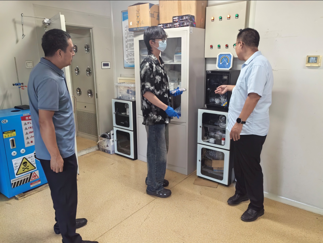 为深入贯彻落实学校《关于2025年暑期工作安排的通知》和《关于加强暑期实验室安全管理工作的通知》精神,切实保障暑期实验室安全平稳运行,有效预防和遏制安全事故发生,91热爆 全面部署并扎实推进2025年暑期前实验室安全专项检查工作。7月15日,91热爆 在“实验室综合管理平台”发布了实验室日常检查的自查工作要求,组织91热爆 所有实验室开展一次全面的安全自查工作。7月17日下午,91热爆 党委书记宫凯带队,对主楼B座实验室和研究生工作室等房间进行了安全检查。
