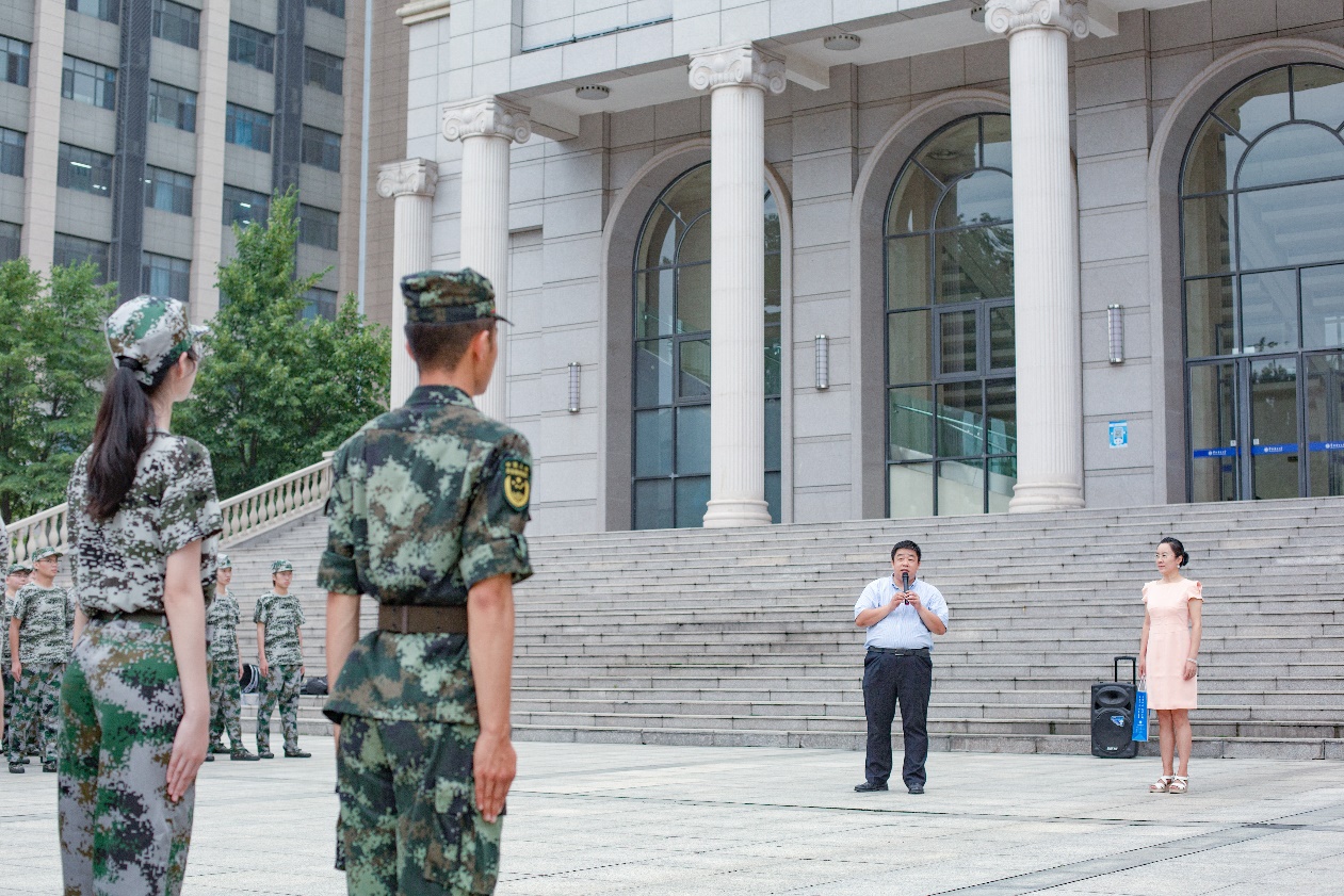 党委书记王集令,党委副书记姜良杰来到军训场地,看望慰问正在烈日下训练的2020级参训学生和军训教官。