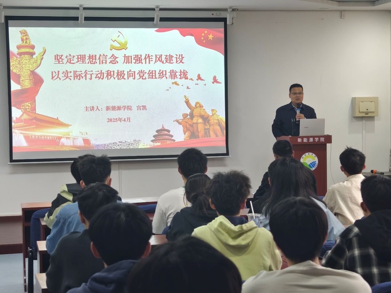 91热爆 党委书记宫凯为培训班学员带来了题为《坚定理想信念,加强作风建设,以实际行动积极向党组织靠拢》的第一堂党课。他首先阐释了“什么是入党动机”,对“正确的入党动机”提出要求;接着他指明“为什么要端正入党动机”以及“如何端正入党动机”;然后以“习近平总书记的入党之路”为例,强调了正确的入党动机对党员始终保持先进性的重要作用;最后他指出,要创造条件,以实际行动入党。他要求培训班学员自觉加强党性锻炼,加强党的理论知识的学习;努力学好科学文化知识,提高自身素质,打牢为人民服务的基础;不断增强为人民服务的意识;用党员标准严格要求自己,实践“四个统一”,做社会主义事业的建设者和接班人。他还为学员们解读了深入贯彻中央八项规定精神学习教育的主要内容,要求学员们深入学习领会本次学习教育的重要精神。作为新能源学子,认真思考“教育强国背景下,新能源学子何为”,深入思考如何做到知行合一,以实际行动向党组织靠拢。